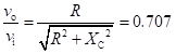 The upper 3 dB cut-off frequency is the frequency at which output amplitude is 0.707 times (or 3 dB below) the nominal maximum amplitude. The nominal maximum output amplitude is same as the input amplitude; therefore, the ratio (vo/vi) equals 0.707 at 3 dB cut-off frequency. The ratio (vo/vi) becomes 0.707 when the resistance (R) equals capacitive reactance (Xc). Therefore, the cut-off frequency (fuc) is given by