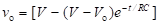 This expression is valid only when the capacitor is initially fully discharged. If the capacitor were initially charged to a voltage Vo, less than V, then the exponential charging equation would be