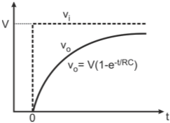 For a step input (vi), the output voltage (vo), which is also voltage across C, rises exponentially towards the final value of V with a time constant (RC). The output voltage (vo) is given by